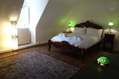 L'une de nos plus petites chambres, très décalées, mais offrant l'une des meilleures vues de la demeure.